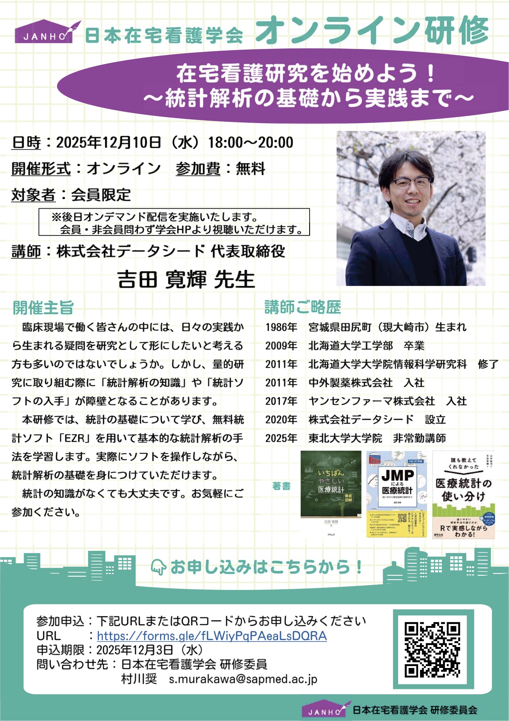 オンライン研修のお知らせ|統計解析の基礎から実践まで 2025年11月05日